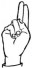 На ћирилици написано РАДНА РАКИЋ састоји се из 10 слова [?]. Исписано ћириличном једноручном азбуком за глувонеме: